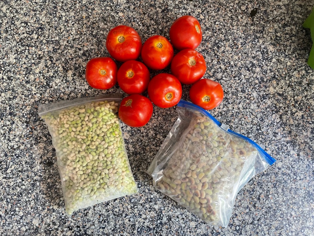 Some trips to the farmers market or produce stand are for little…but important purchases! Today was a day like that! All we need were purple hill peas, cream peas, and ‘maters! Got’em!!!