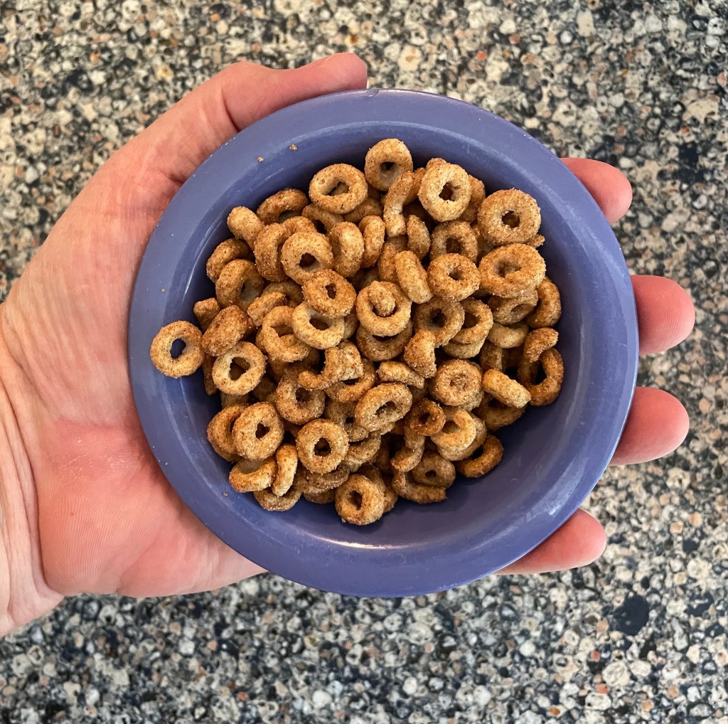 Please note…Cinnamon and Chocolate Cheerios (and similar chocolate “O” products) do contain sugar, AND they do contain a bit of added preservatives to give them more shelf life…but those quantities are small. It’s not enough to give me pause, and the calorie intake doesn’t hurt my nutrition levels at all (if I eat the recommended serving).