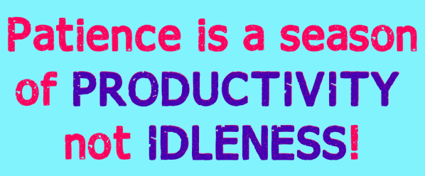 Patience is a season of productivity, not idleness! All to often, when we hear the words "be patient", we think to ourselves, "I just gotta relax and take it easy for a bit...